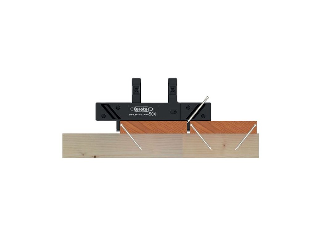 Vruty nasaďte do předvrtaného otvoru, který má pouze předem daný úhel 50°. Tento postup lze provést jak s umístěným Drill Tool 50X tak také bez něj.Začněte při tom s vrutem v opačném směru. Při použití upínacích a šroubových svěráků je nutné použití dalších distančních držáků / spárovacích křížů větší nebo rovno 6mm aby se zabránilo tomu, že nástroj bude sevřen nebo dokonce poškozen.Doplňkové parametry