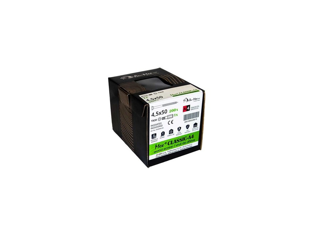 Mex Classic 4.5x50/TX20, nerezová ocel A4, 200 ks/balení+bit