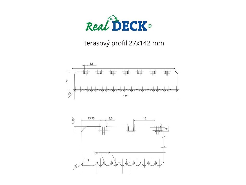 Bělové dřevo nažloutle bílé až načervenale bílé, jádrové dřevo načervenale hnědé až tmavě červenohnědé. Modřín sibiřský patří k nejcennějším a nejtrvanlivějším druhům mezi jehličnatými druhy dřeva. Jeho obsažená pryskyřice odpuzuje vodu jako přírodní impregnace a chrání dřevo před napadením houbami. Na základě pomalého růstu v chladných regionech je sibiřský modřín tvrdší než evropský. Modřín je obzvláště citlivý na železo, a aby se zabránilo místům od rzi, doporučujeme připevňovací prostředky pouze z ušlechtilé oceli. Kvalita třídění: C Hustota dřeva: ca. 650 kg/m3 Uměle sušené na: 16-18% Doporučené dilatace mezi prkny při pokládce: 5 – 7 mm Varianta zpracování: 27 x 142 mm - pohledová strana = jemná drážka 4x lehce sražená fáze, radius 3,5 mmDoplňkové parametry