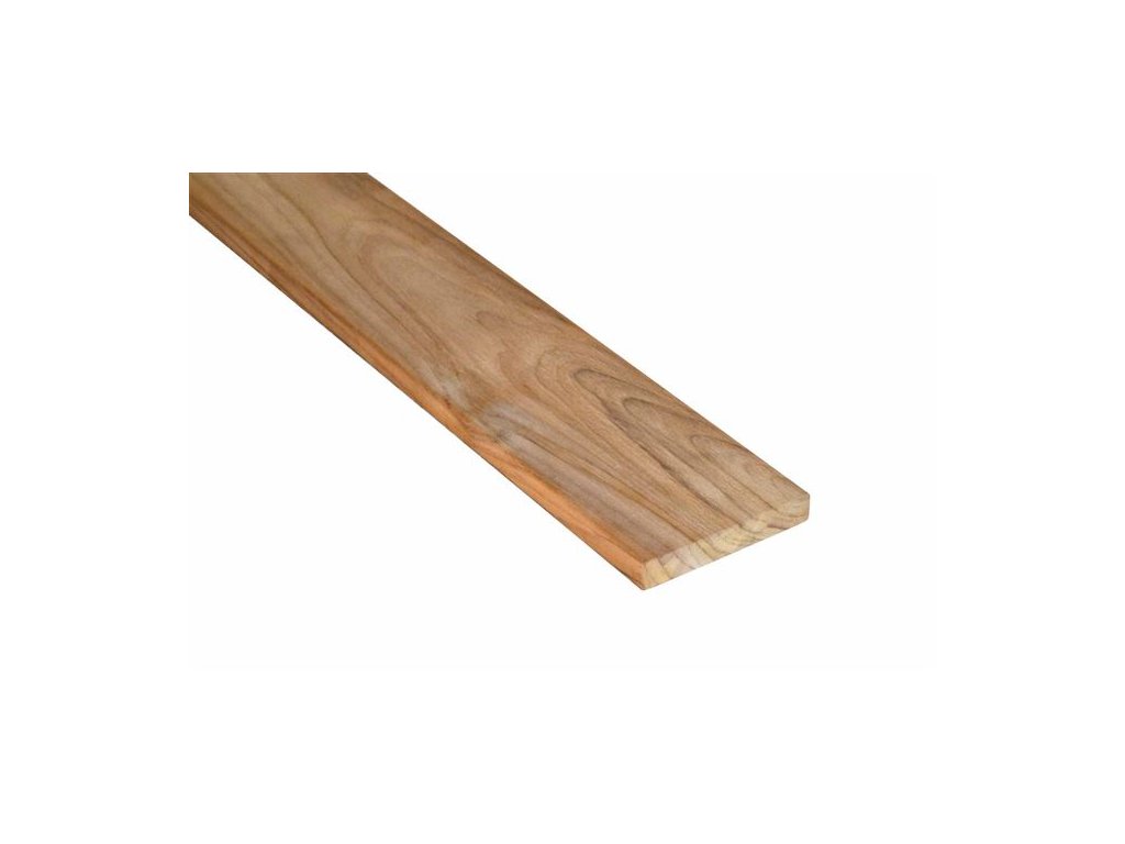 Teak má úzké, světle žlutohnědé bělové dřevo a tmavé zlatohnědé jádrové dřevo, které na vzduchu na povrchu tmavne na středně nebo tmavě hnědé. Teak oplývá živější strukturou, širší škálou barevnosti a různorodější strukturou. Má také vysokou pevnost a trvanlivost, je stabilní v proměnlivých atmosférických podmínkách a má pěkný barvami hrající dekorativní vzhled. Hustota dřeva: 610 - 690 kg/m3 Uměle sušené na: 18-20% Doporučené dilatace mezi prkny při pokládce: 5 – 7 mm Pohledová strana = hladkáDoplňkové parametry