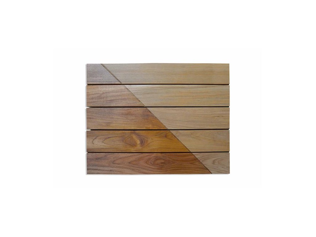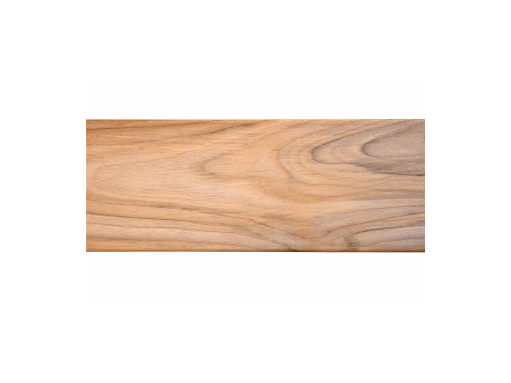 Teak má úzké, světle žlutohnědé bělové dřevo a tmavé zlatohnědé jádrové dřevo, které na vzduchu na povrchu tmavne na středně nebo tmavě hnědé. Teak oplývá živější strukturou, širší škálou barevnosti a různorodější strukturou. Má také vysokou pevnost a trvanlivost, je stabilní v proměnlivých atmosférických podmínkách a má pěkný barvami hrající dekorativní vzhled. Hustota dřeva: 610 - 690 kg/m3 Uměle sušené na: 18-20% Doporučené dilatace mezi prkny při pokládce: 5 – 7 mm Pohledová strana = hladkáDoplňkové parametry
