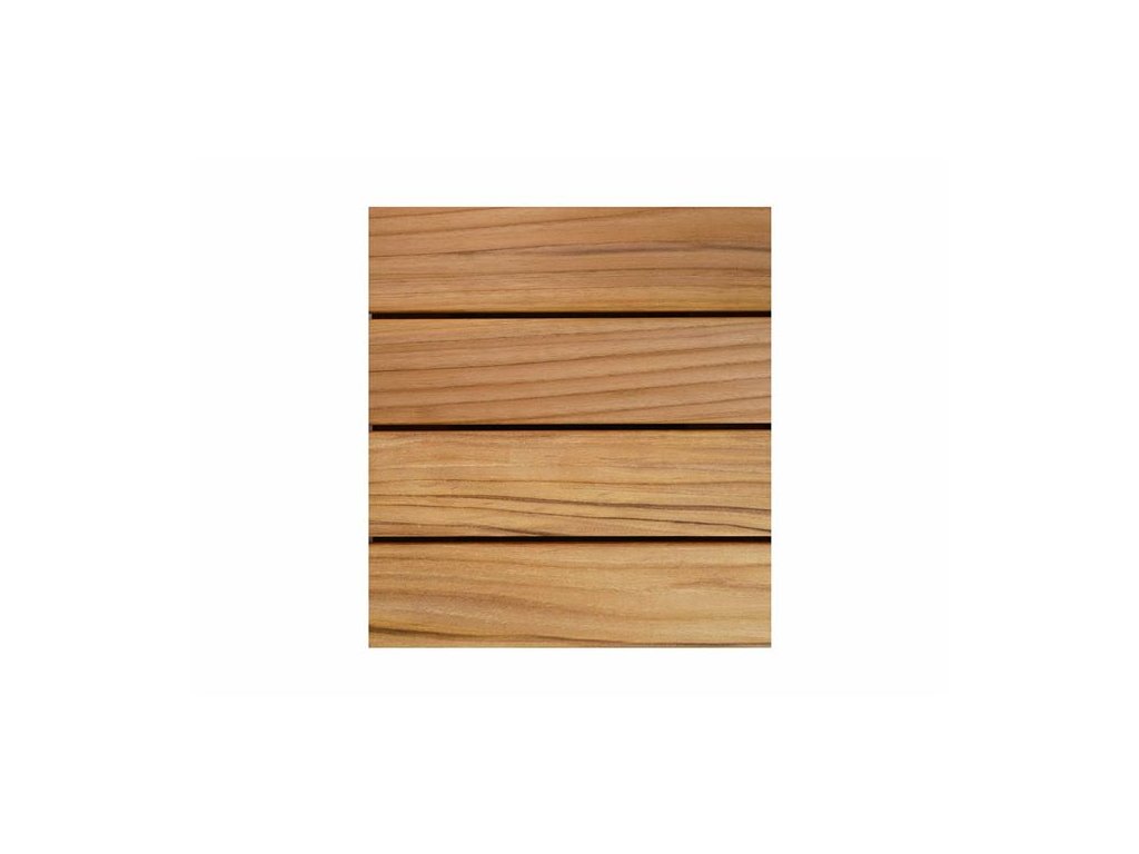 Teak má úzké, světle žlutohnědé bělové dřevo a tmavé zlatohnědé jádrové dřevo, které na vzduchu na povrchu tmavne na středně nebo tmavě hnědé. Teak oplývá živější strukturou, širší škálou barevnosti a různorodější strukturou. Má také vysokou pevnost a trvanlivost, je stabilní v proměnlivých atmosférických podmínkách a má pěkný barvami hrající dekorativní vzhled. Hustota dřeva: 610 - 690 kg/m3 Uměle sušené na: 18-20% Doporučené dilatace mezi prkny při pokládce: 5 – 7 mm Pohledová strana = hladkáDoplňkové parametry