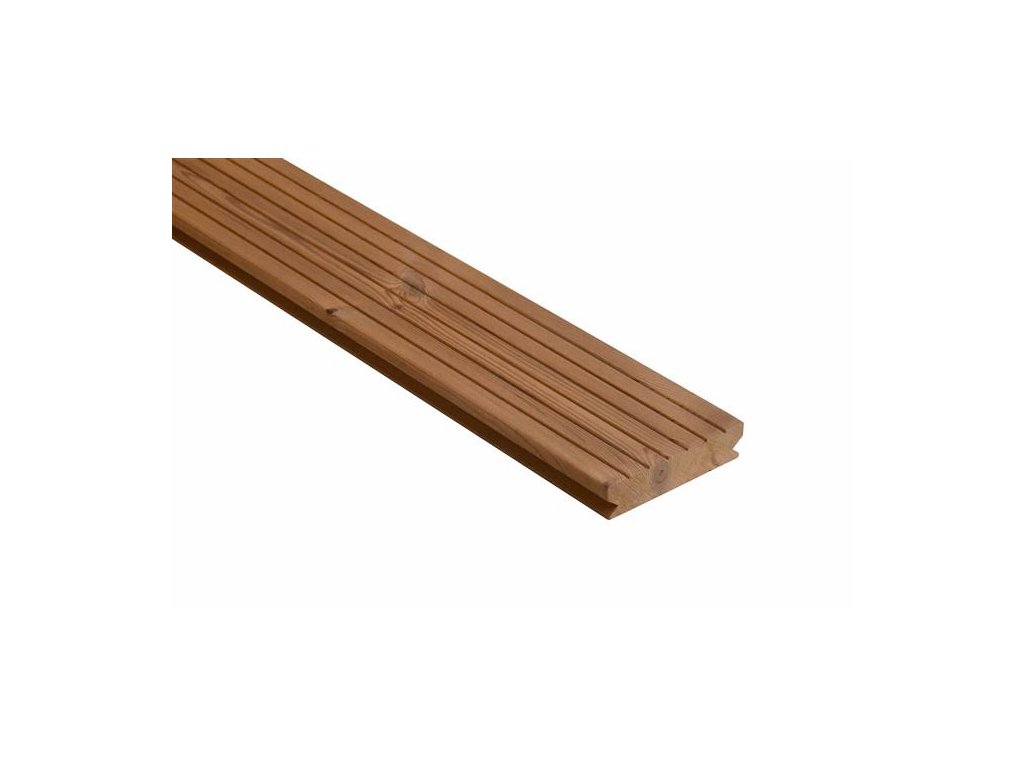 Thermo dřevo – borovice Rozměrově stabilní, odolné a zcela ekologické dřevo. Námi dodávané Thermo dřevo je vyráběno metodou WTT při, které se využívá tepelná úprava dřeva při 212°C. Dřevo získá výrazně zlepšenou rozměrovou stabilitu a tím se snižuje náchylnost dřeva k deformacím resp. k bobtnání a následnému smršťování dřeva. Rozměrové změny se eliminují až o 60%. Dřevo vykazuje zvýšenou odolnost vůči hnilobě a plísním a zároveň i zlepšené izolační vlastnosti. Hustota dřeva: ca. 450 kg/m3 Uměle sušené na: 16-18% Tento systém terasového dřeva s clipem umožňuje připevnění se shora neviditelným uchycením. Při instalaci terasových prken pomocí klipů je první prkno stále potřeba připevnit vrutem na jedné straně. Otvor pro vhodný vrut pro Thermo dřevo je třeba předvrtat. Ponechte 20 mm mezeru mezi terasou a sousedící stěnou domu. Dále se umístí terasový klip do drážky na spodní straně prkna a připevní se k podkladovému hranolu vrutem. Takto se pokračuje až do konce terasy. Stejně jako první i poslední prkno musí být připevněno vrutem skrz prkno z vnější strany. Pro položení 1 m2 terasy potřebujete 22 kusů clipů.Doplňkové parametry